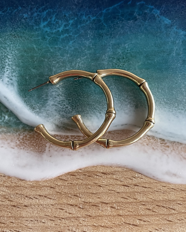 Серьги "Бамбук" цвет золото A&C (Норвегия)