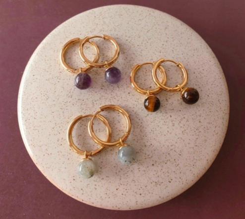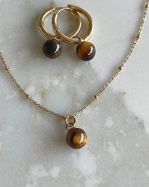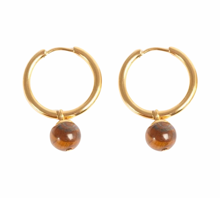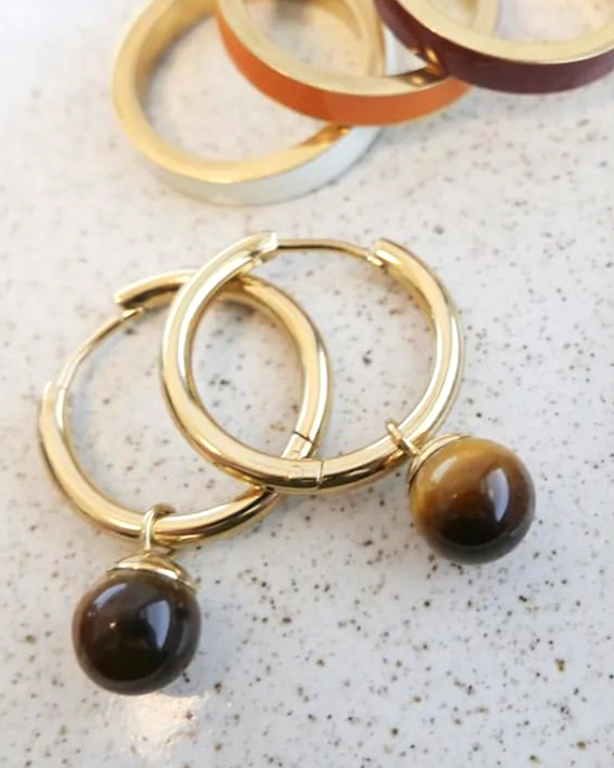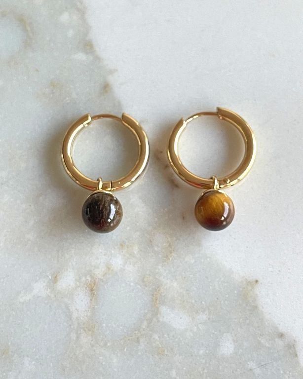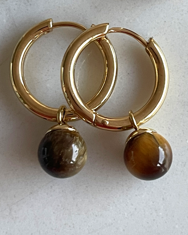 Серьги-кольца с подвеской из тигрового глаза цвет золото A&C (Норвегия)