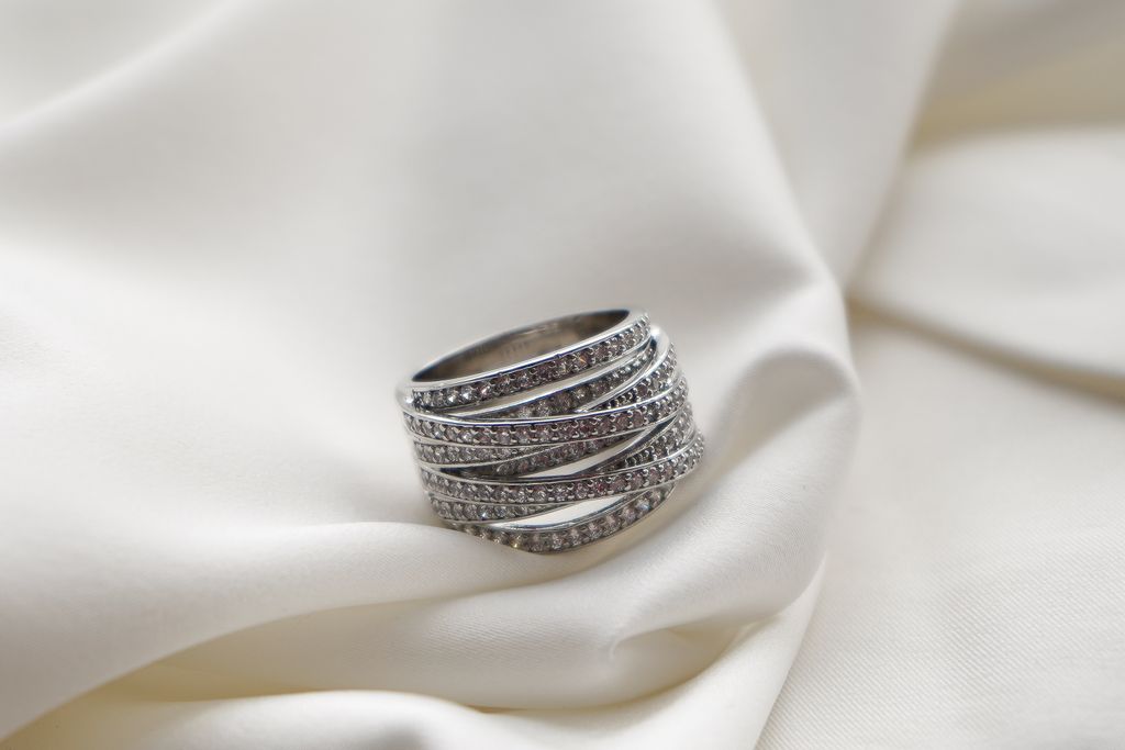 Кольцо из недрагоценного сплава с гальваническим серебряным покрытием и вставкой из стекла