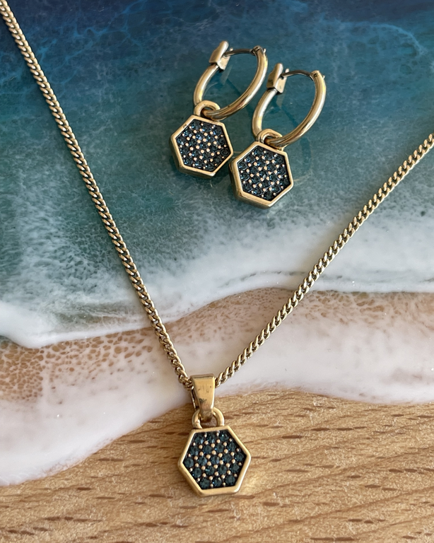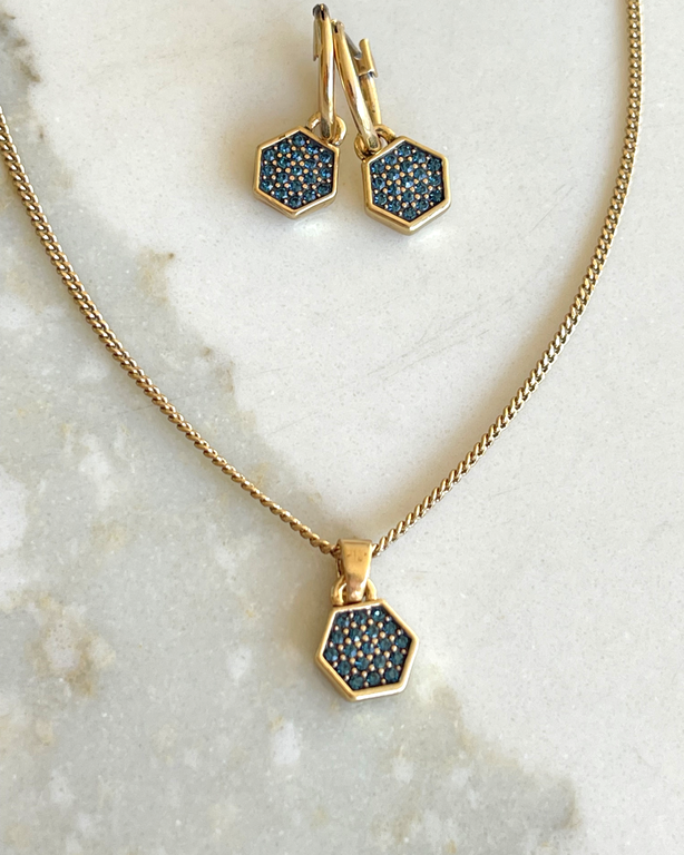 К колье есть родные серьги. Цвет европейское золото - выглядит благородно - идеально подходит к офисному дресс-коду.