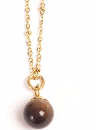 Колье из недрагоценного сплава с золотым покрытием, подвеска - натуральный тигровый глаз от норвежского бренда A&C.